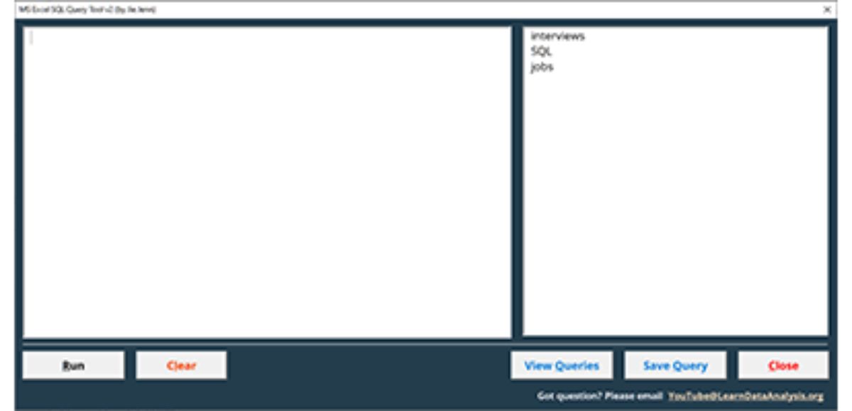 Excel SQL Query Tool v2 (with save query function)