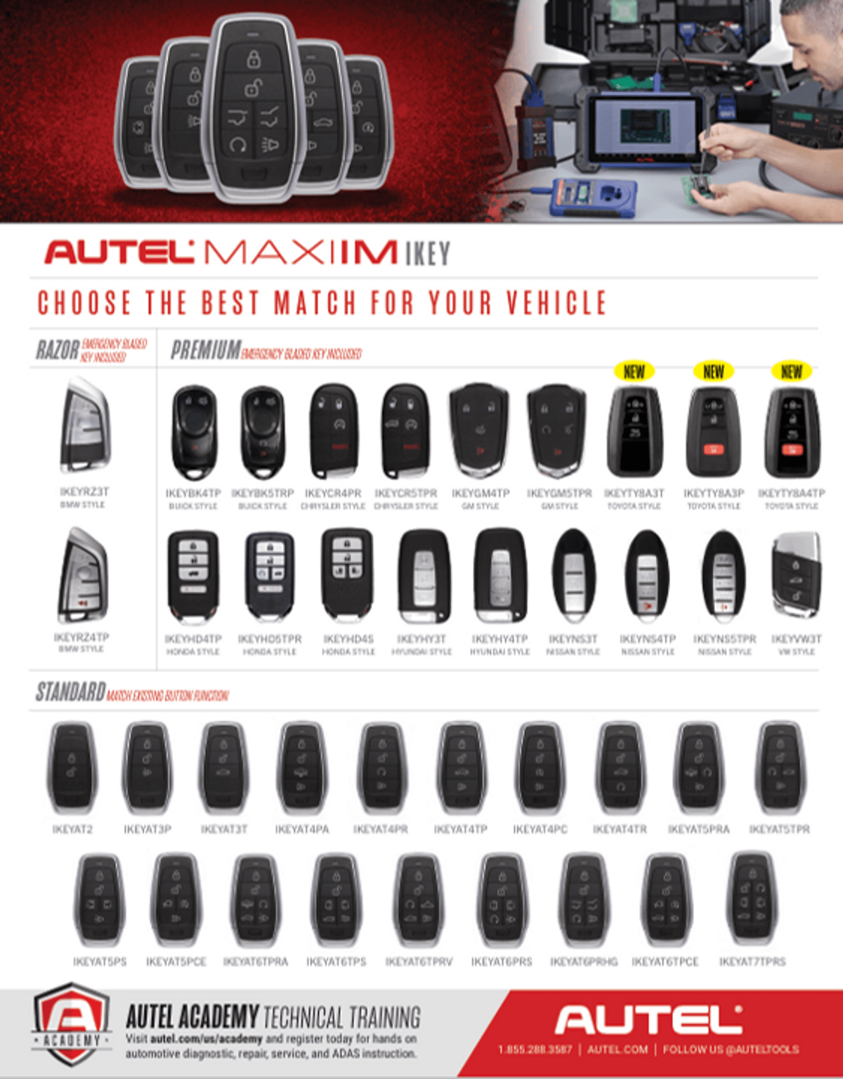 Autel Toyota/Lexus Universal Key Generation Support List