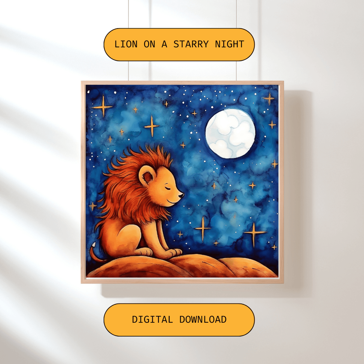 Lion On a Starry Night 2, Printable Baby Nursery Wall Art