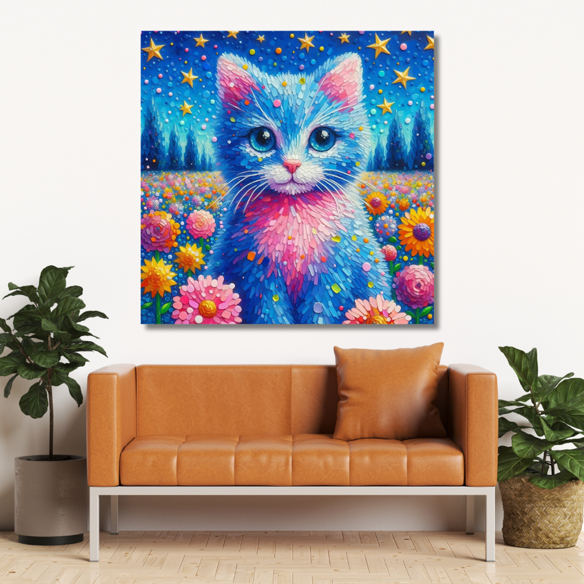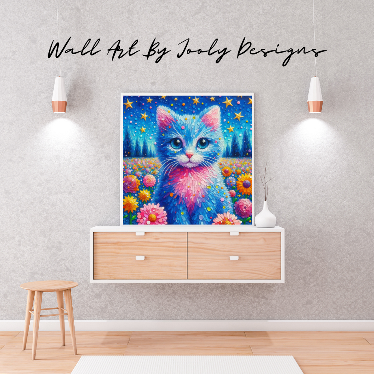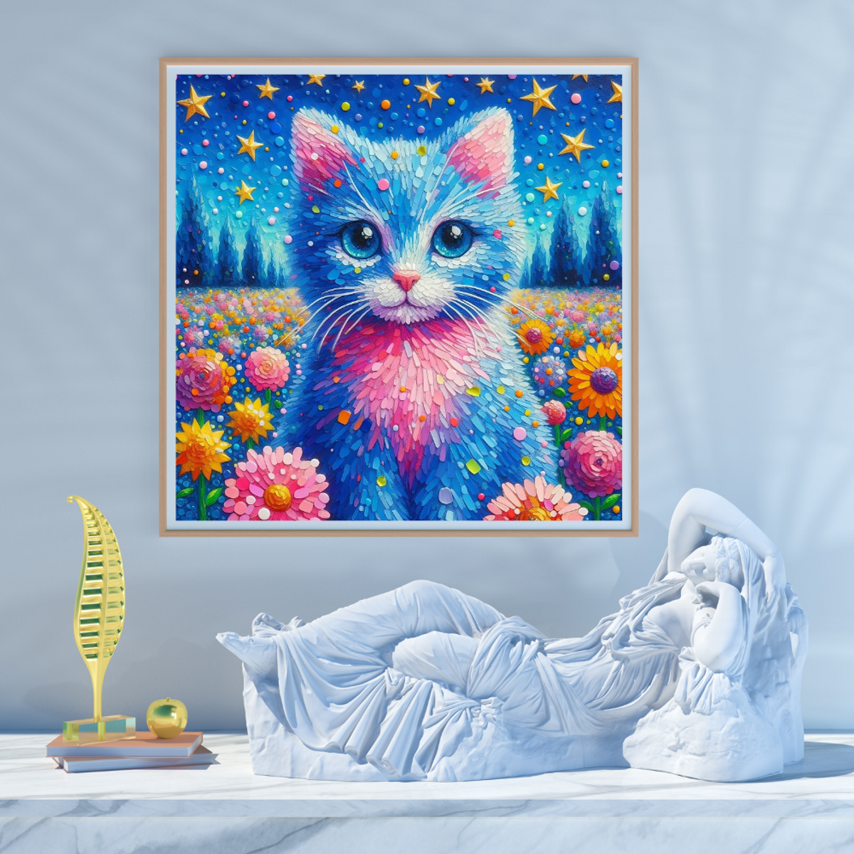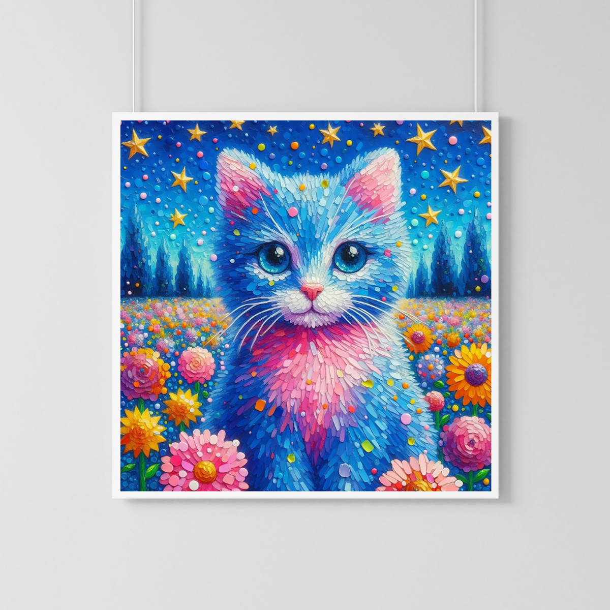 Enchanted Purr-spectives: A Digital Floral Fantasy Art - Printable Wall Art