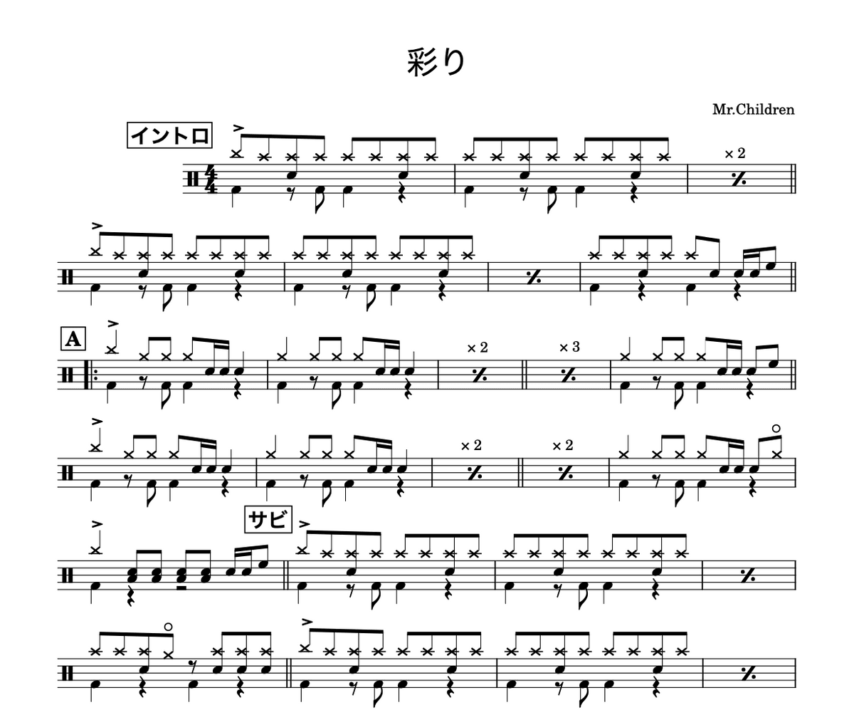 彩り - Mr.Children | Drum Sheet Music (PDF)