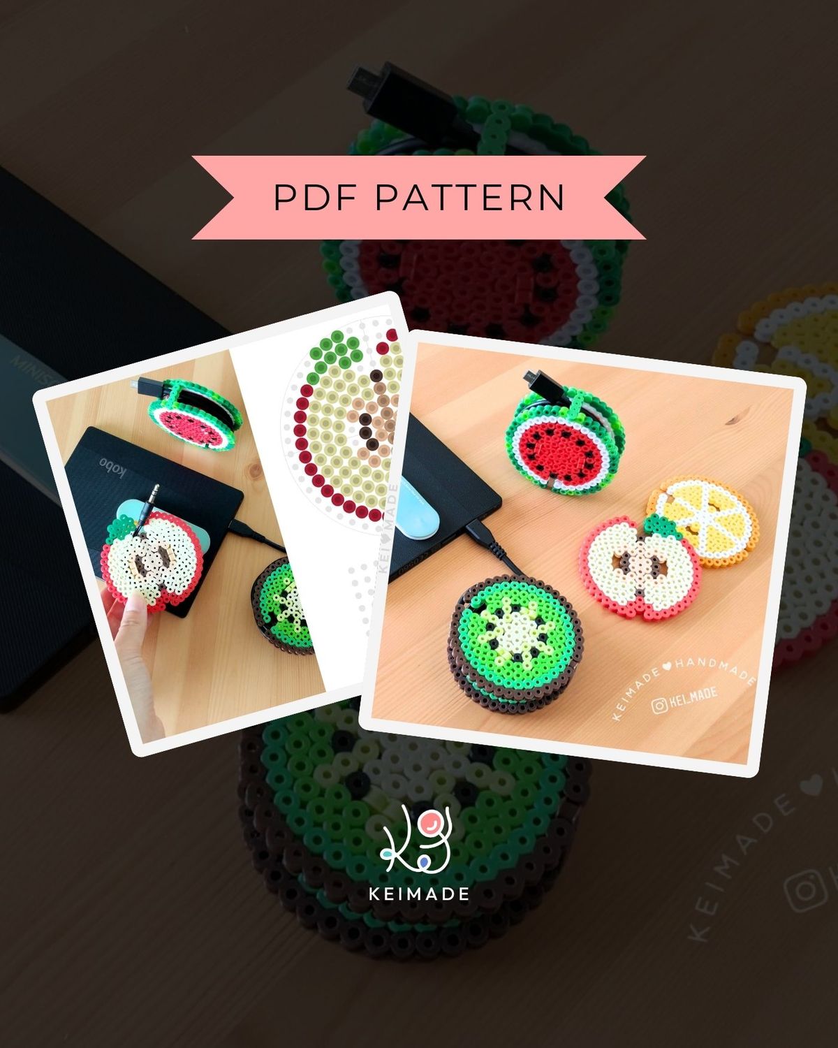 Fruit Earphone Holder / Cable Organiser Beads Pattern (e-book)
