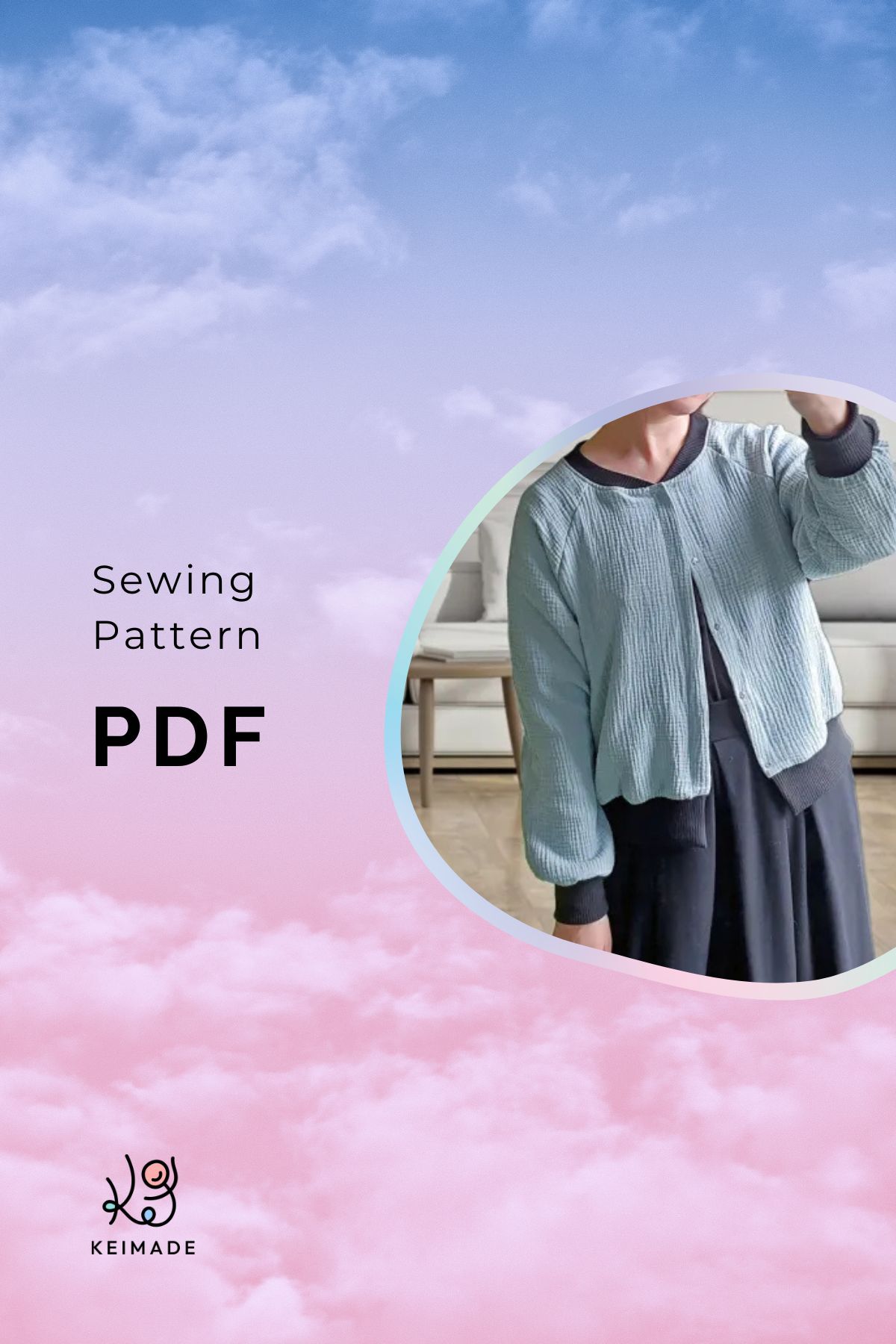 PDF Printable Raglan Cardigan / Bomber Jacket Sewing Pattern S8 (A4, 18pages)