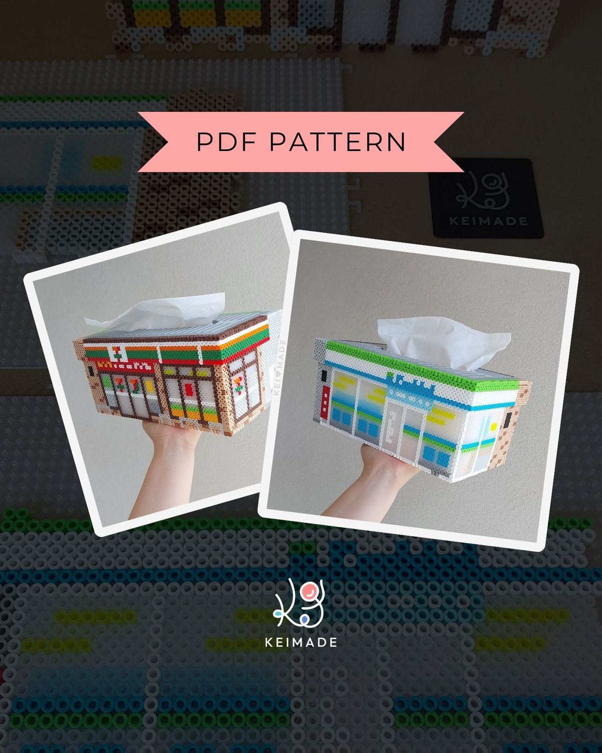 PDF Konbini Tissue Box Case - 3D fuse bead pattern