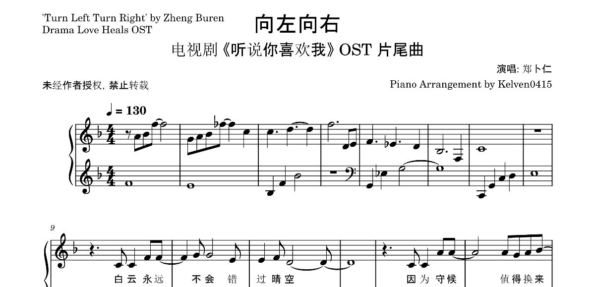 郑卜仁 - 向左向右 Turn Left Turn Right 钢琴谱 Piano Sheet🎹