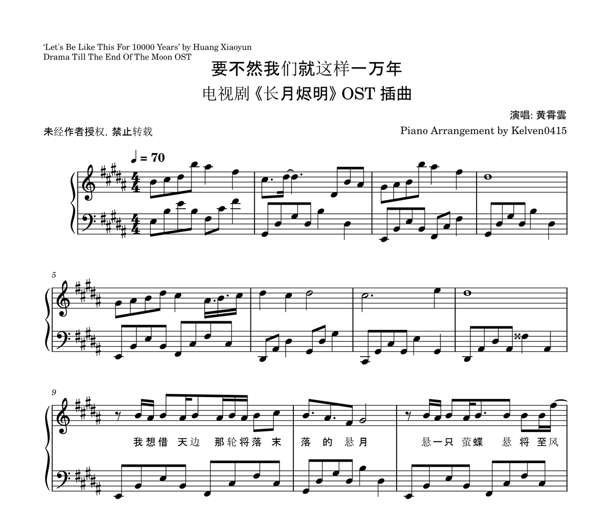 黄霄雲 - 要不然我们就这样一万年 钢琴谱 Piano Sheet🎹