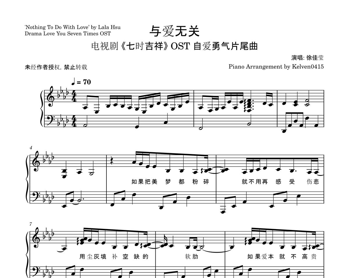 徐佳莹 Lala Hsu - 与爱无关 Nothing To Do With Love 钢琴谱 Piano Sheet🎹