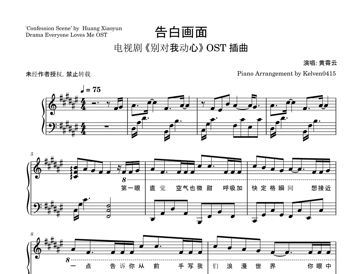 黄霄云 Huang Xiaoyun - 告白画面 钢琴谱 Piano Sheet🎹