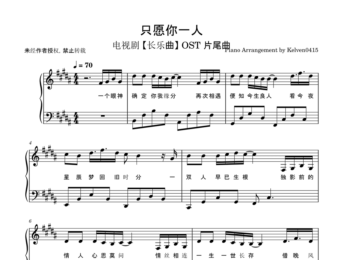 丁禹兮 & 邓恩熙 - 只愿你一人 钢琴谱 Piano Sheet🎹