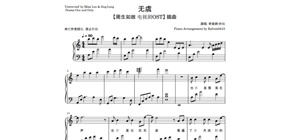 李紫婷/井胧 - 无虞 钢琴谱 Piano Sheet & 钢琴教学 Piano Tutorial (Synthesia) 🎹