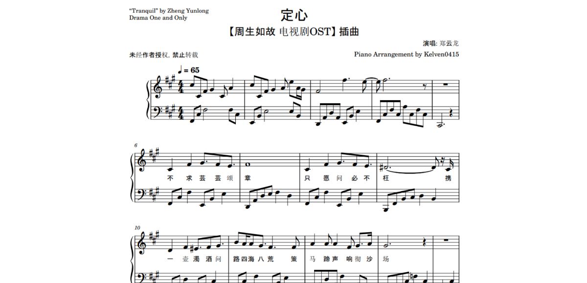 郑云龙 - 定心 钢琴谱 Piano Sheet & 钢琴教学 Piano Tutorial (Synthesia) 🎹