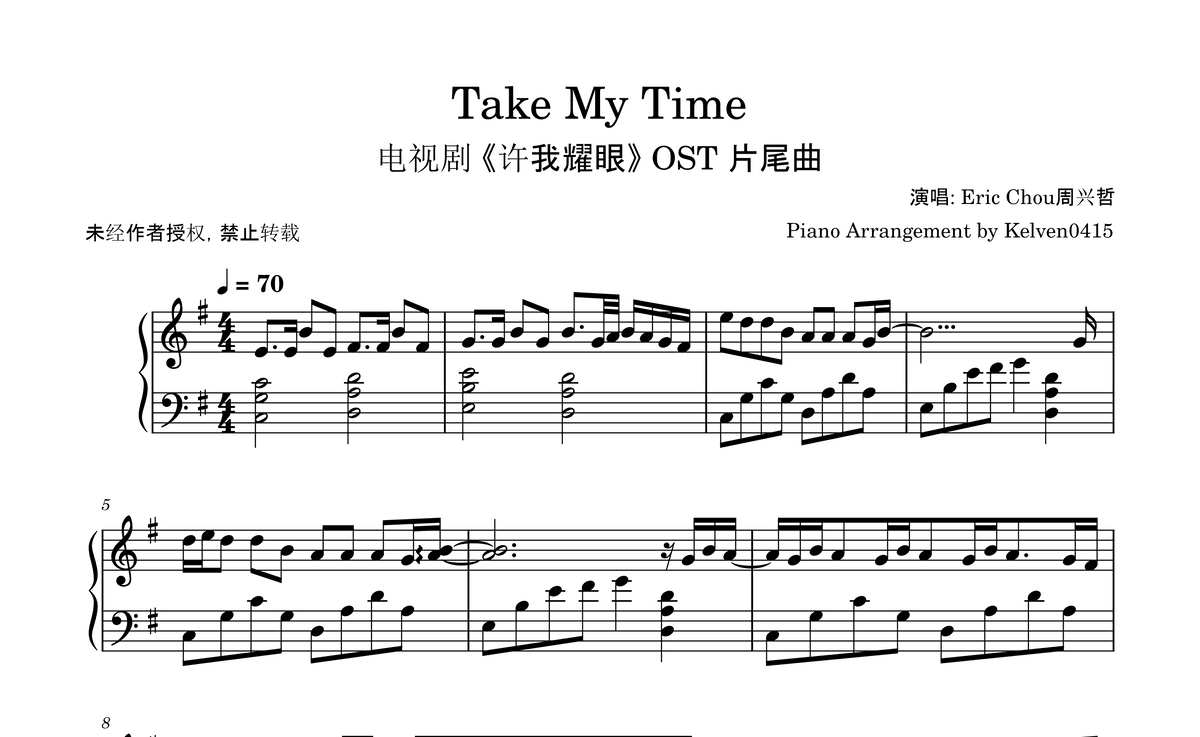 Eric Chou 周兴哲 - Take My Time 钢琴谱 Piano Sheet🎹