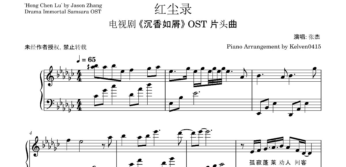张杰 - 红尘录 钢琴谱 Piano Sheet & 钢琴教学 Piano Tutorial (Synthesia) 🎹
