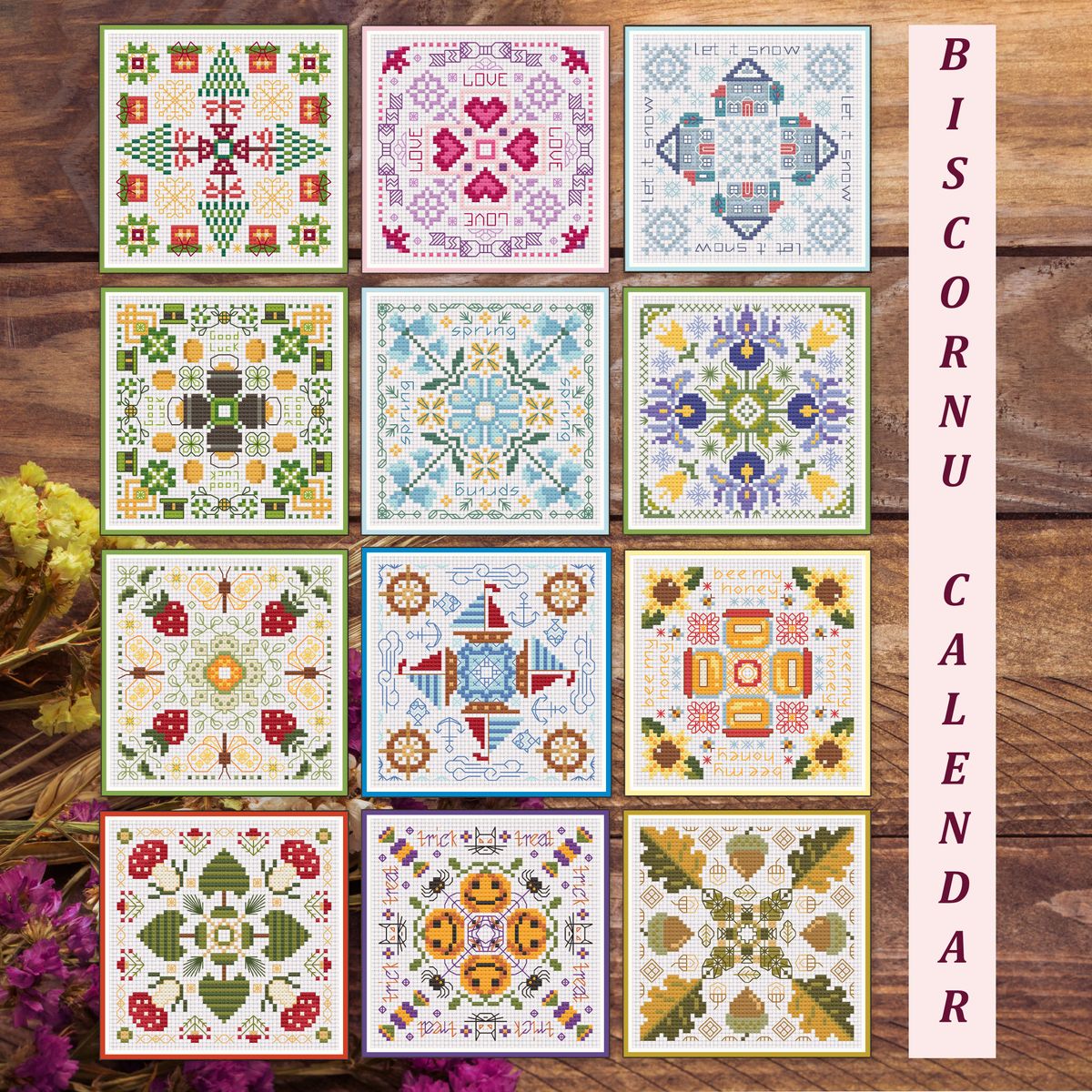 Pincushion Cross Stitch Calendar - 12 months