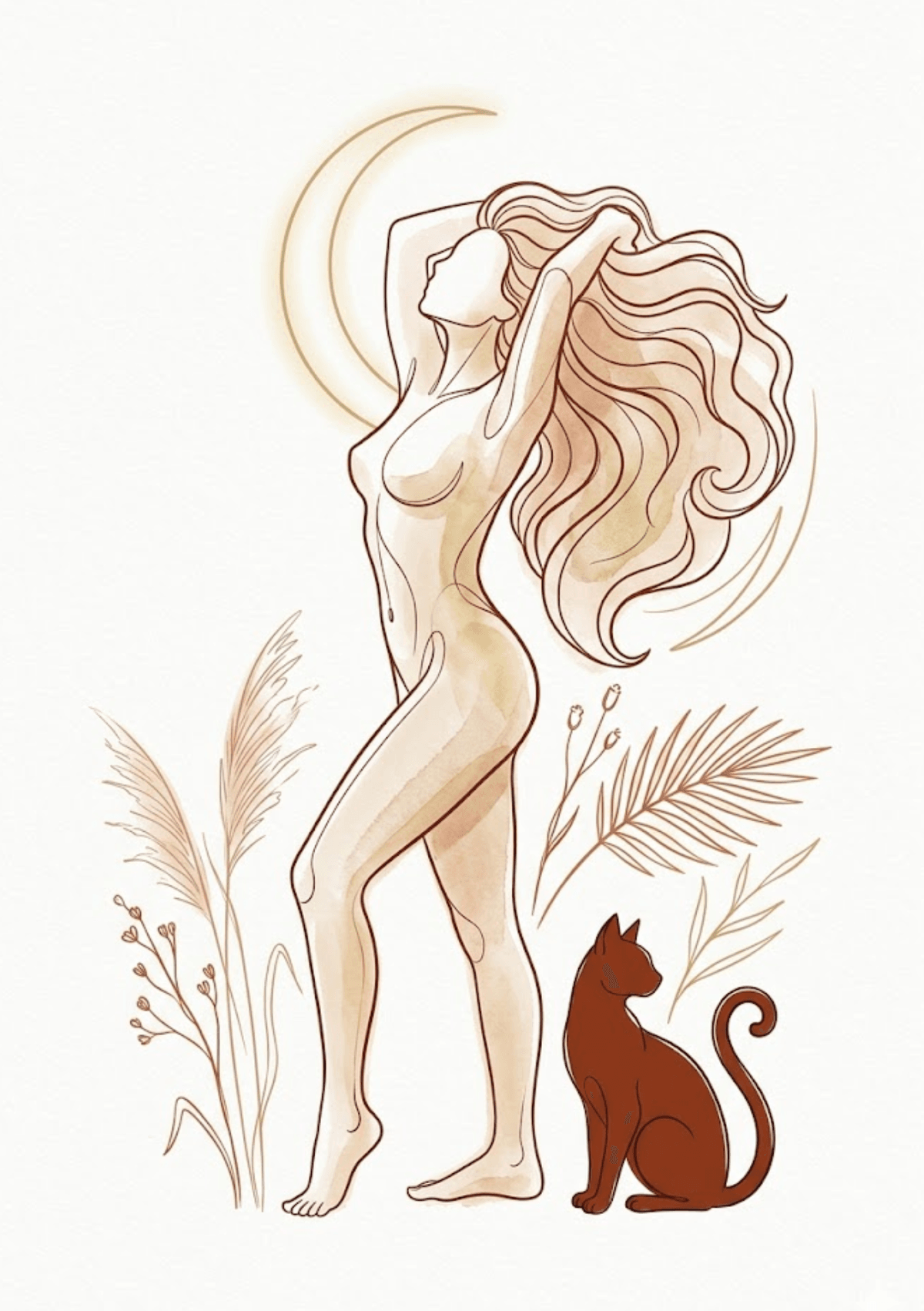 Divine Feminine Wall Art Bundle (10 Prints) | Boho Goddess Silhouette with Cat | Minimalist Spiritual Printable Decor | Terracotta Boho Wall Art Set