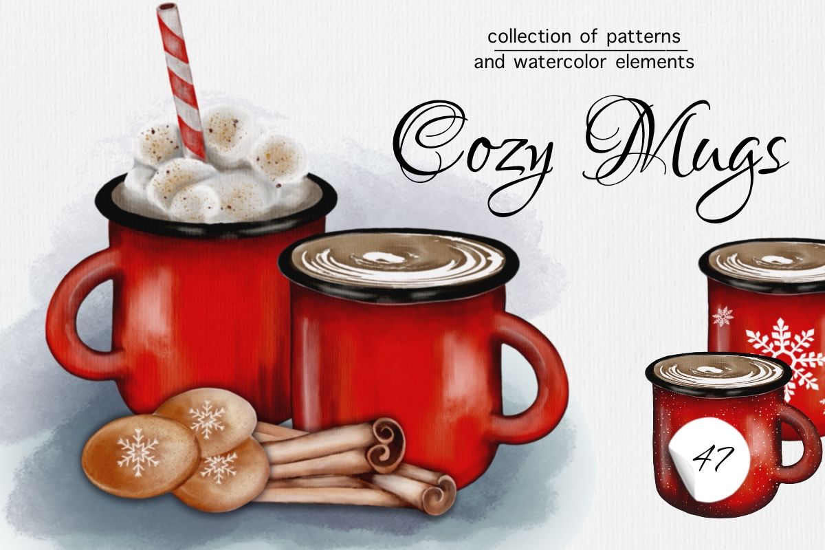 Cozy Mugs Clipart PNG Graphic