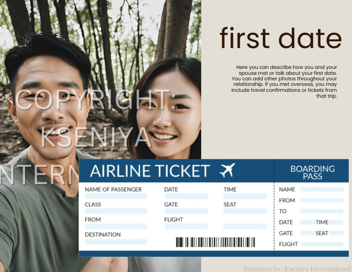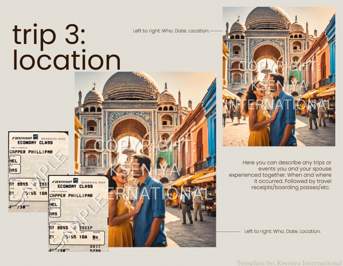 Photo Evidence Template for Marriage Green Card- Horizontal View
