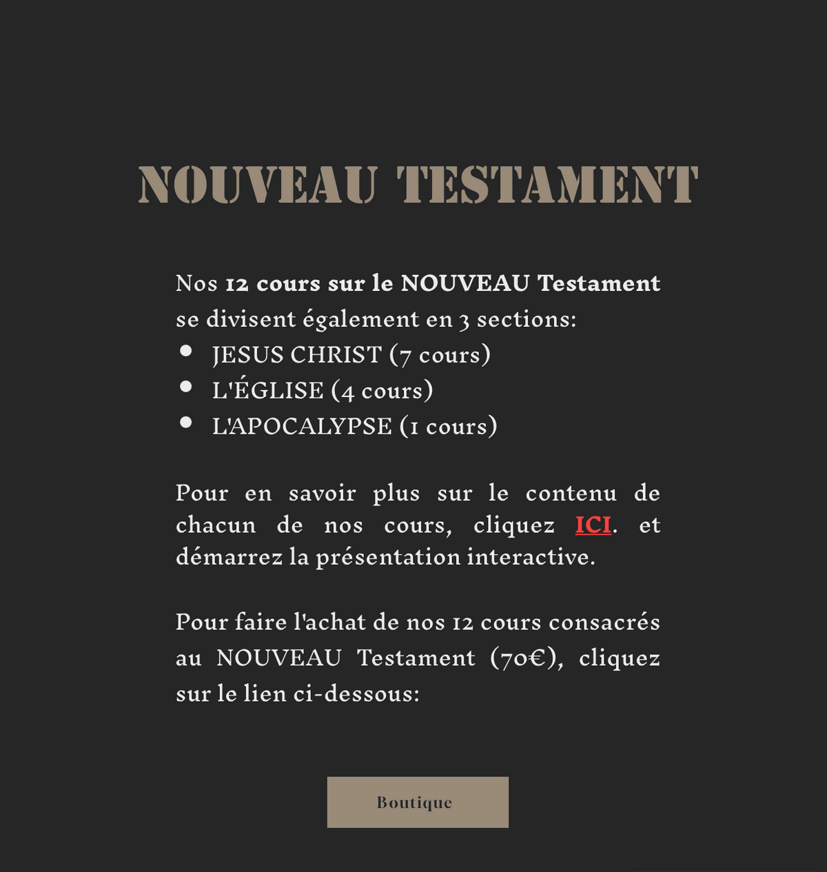 Le NOUVEAU TESTAMENT / cours 13 à 24
