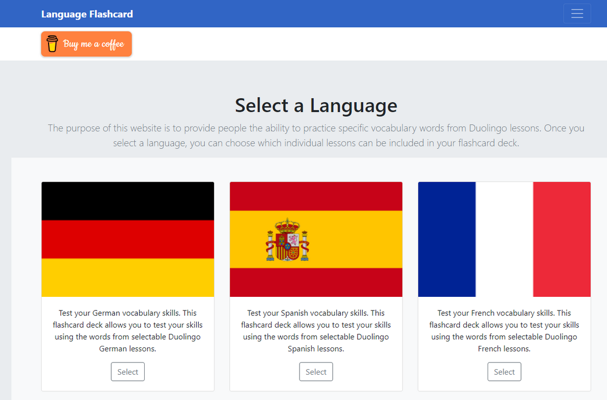 Offri un caffè a Language Flashcard App