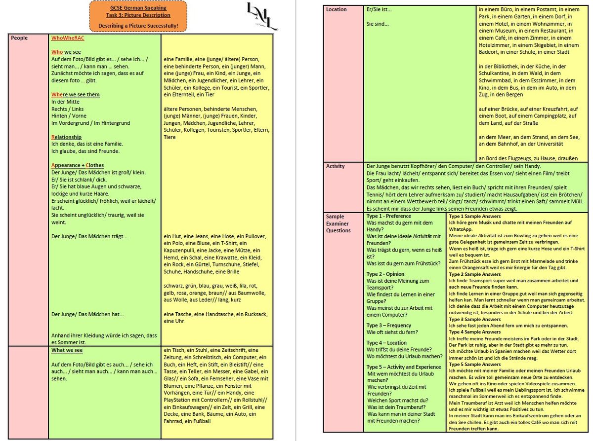 GCSE German Speaking Exam Picture Description Task Chatty Mat 2024 Spec