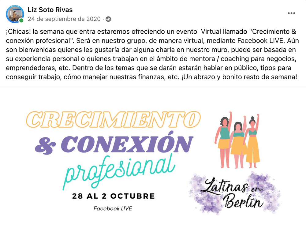 Eventos con mujeres emprendedoras y miembras de la comunidad.