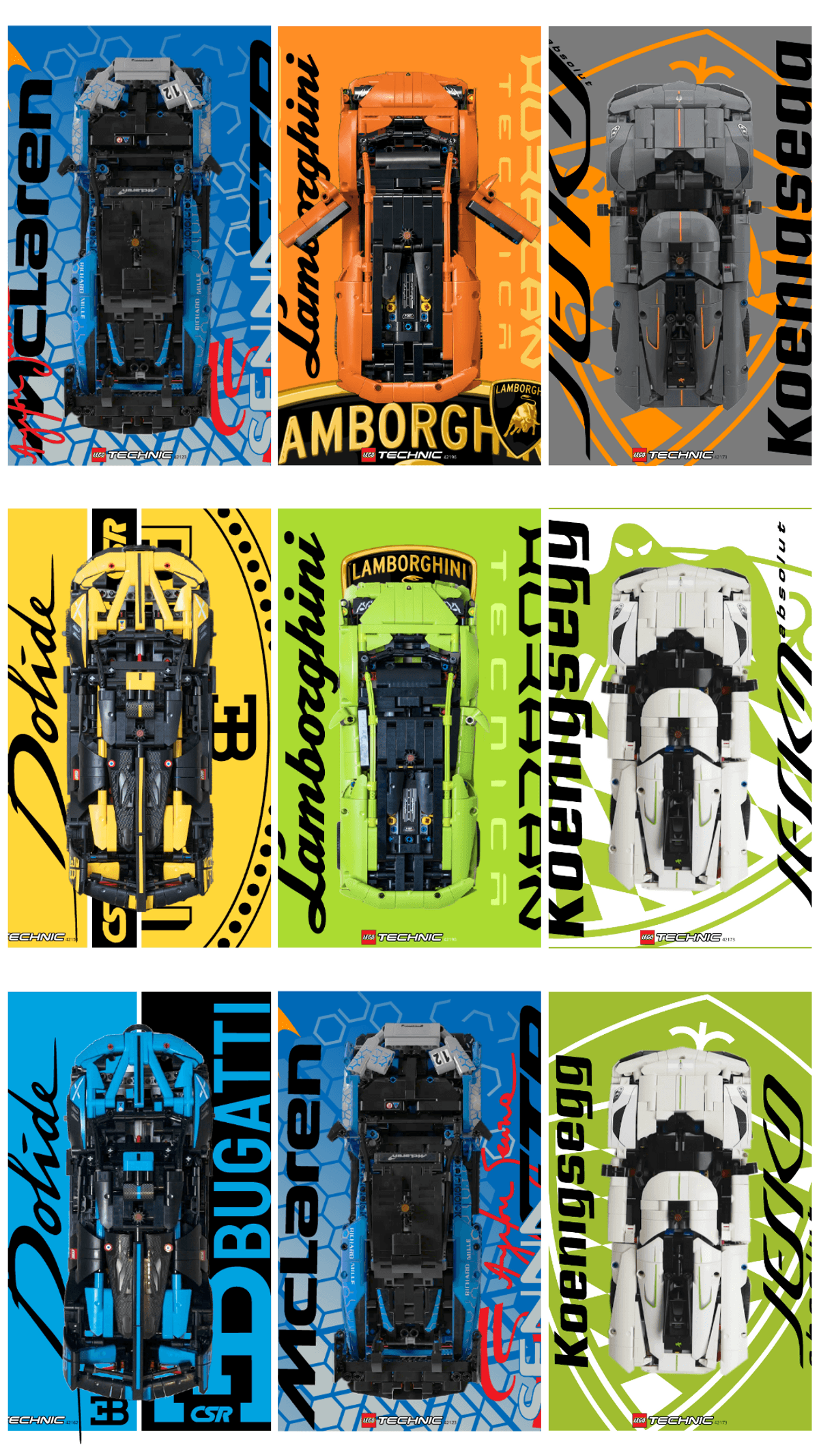 PREMIUM PACK - (16) Small Technic 1:16 scale cars: SENNA, JESKO, HURACAN, BOLIDE... - IKEA frame Compatible (30x40cm) - Prints