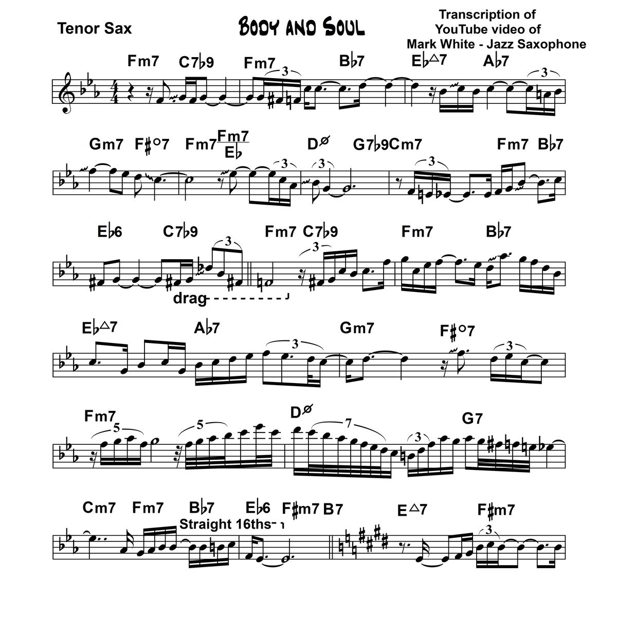 BODY AND SOUL - FINALE File Transcription of my YouTube Video