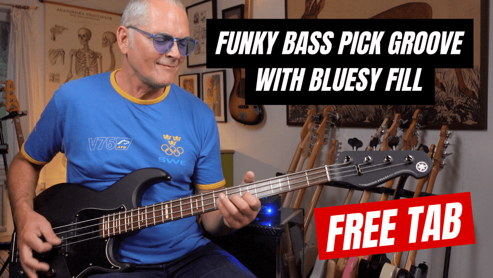 NL38 Funky Pick Bass w bluesy Fill - Guitar Pro, backing track mp3, Soundslice and pdf