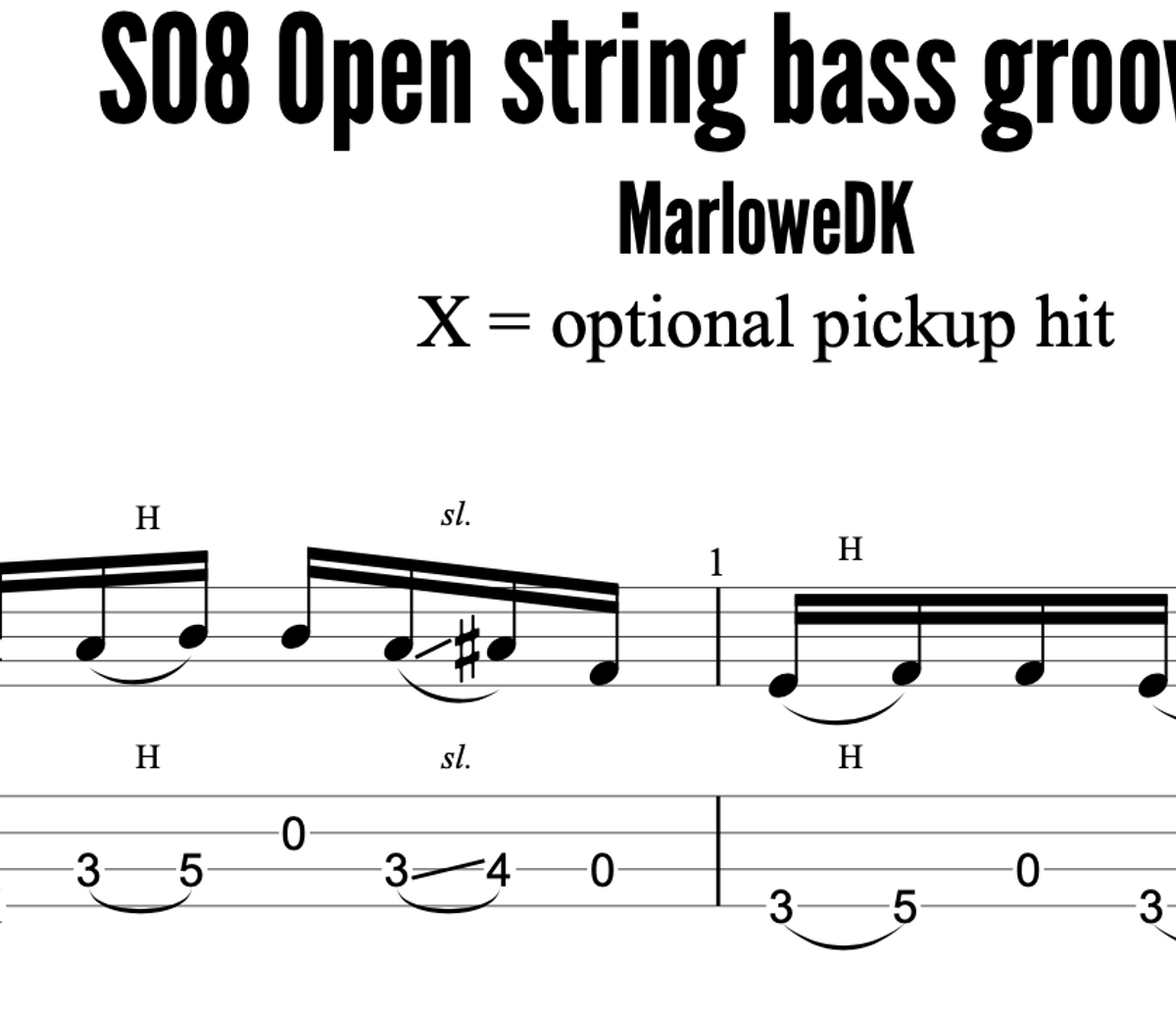 S08 Open strings bass groove in A - Guitar Pro and PDF