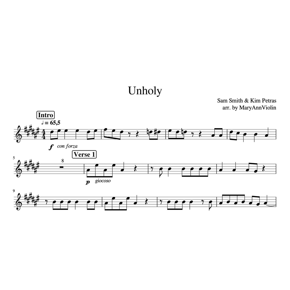 Unholy - Sam Smith & Kim Petras [Alto Sax Scores] (arr. by MaryAnnViolin)