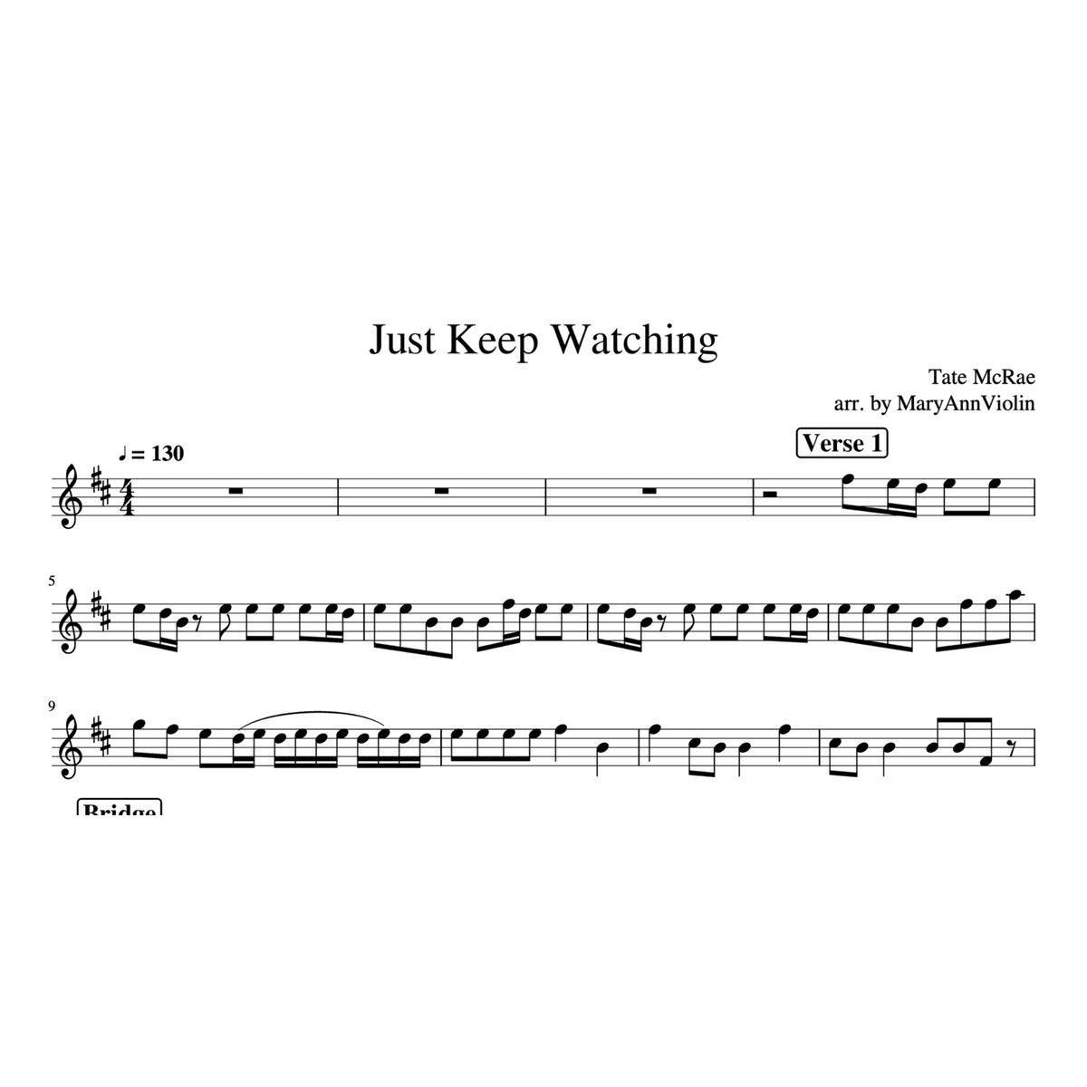 Just Keep Watching - Tate McRae [Violin Scores] (arr. by MaryAnnViolin)