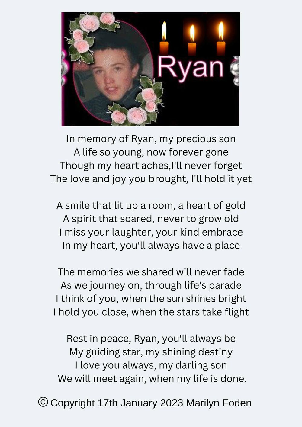 This is a poem I wrote for my son Ryan