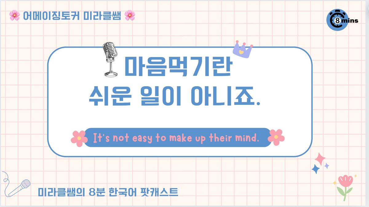 [8분 한국어] 에피소드2. "마음먹기란 쉬운 일이 아니죠."_미라클쌤의 8분 한국어 팟캐스트