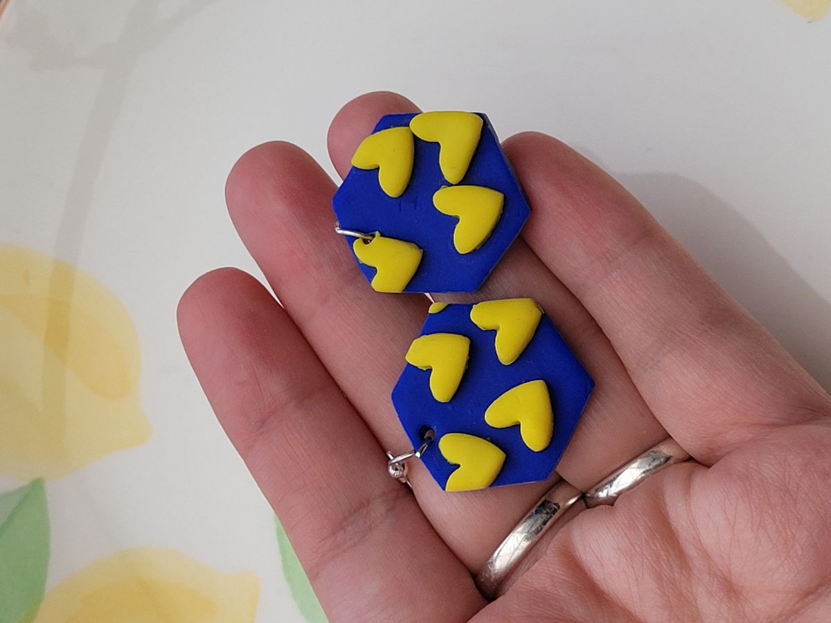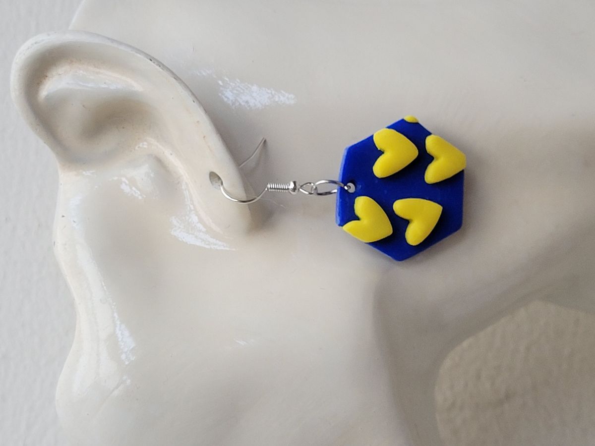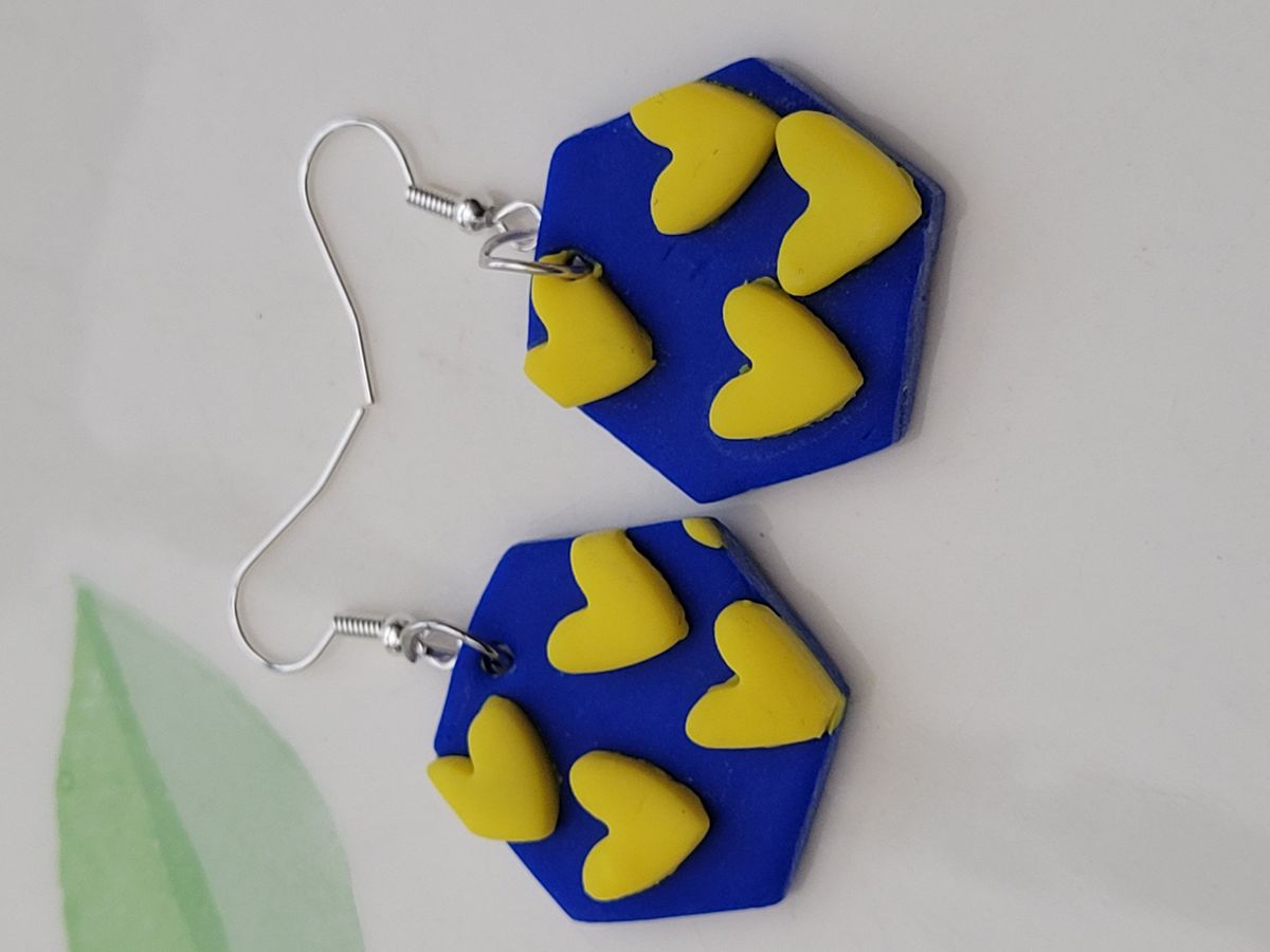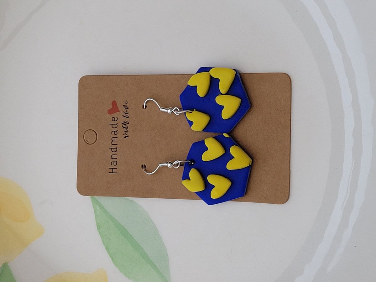 Help Ukraine - Hexagon Heart Earrings in Ukrainian colours