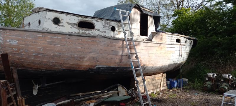 Working on the transom area of Chance removing the rotten deadwood and the last floors and