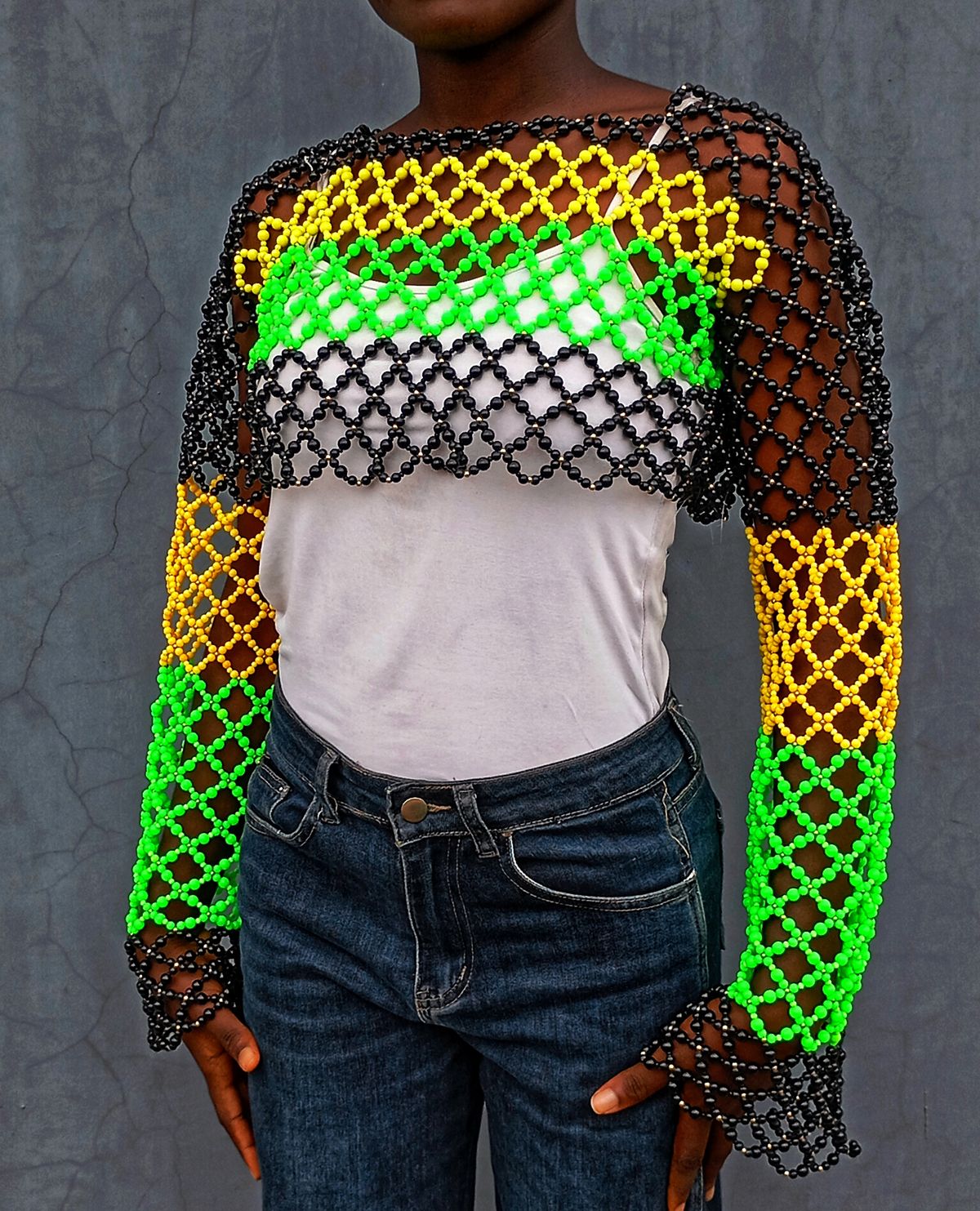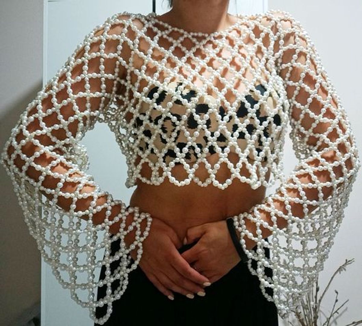 Long Sleeves Pearl Beaded Top