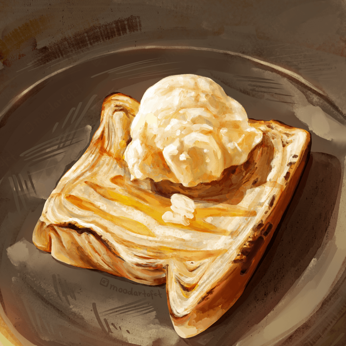 Roasted Bread Honey Syrup Ice Cream Digital Wallpaper
