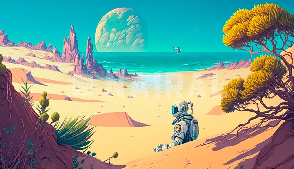 An astronaut on an alien planet