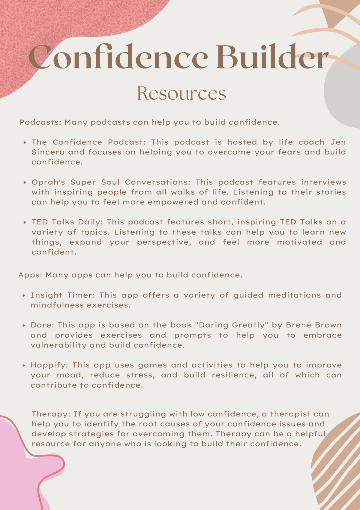 Confidence Builder Printable workbook