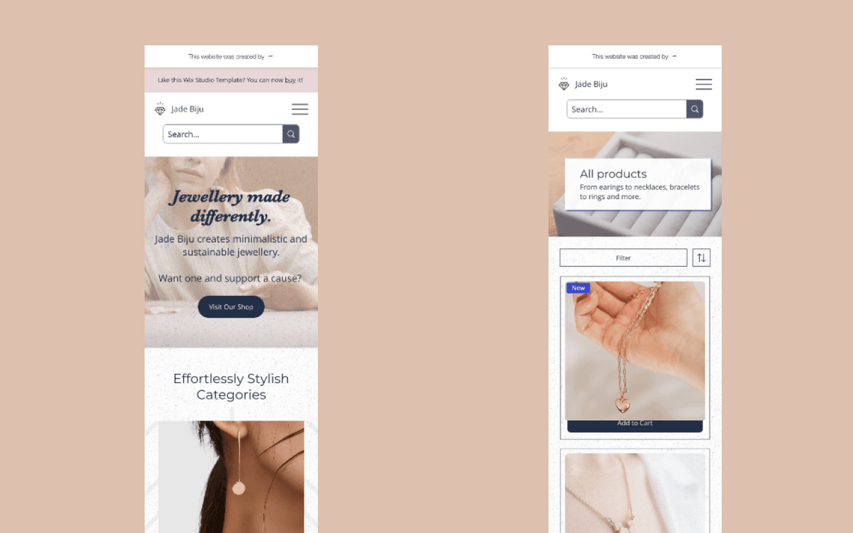 E-Commerce Wix Studio Website Template Jade Biju Jewelry
