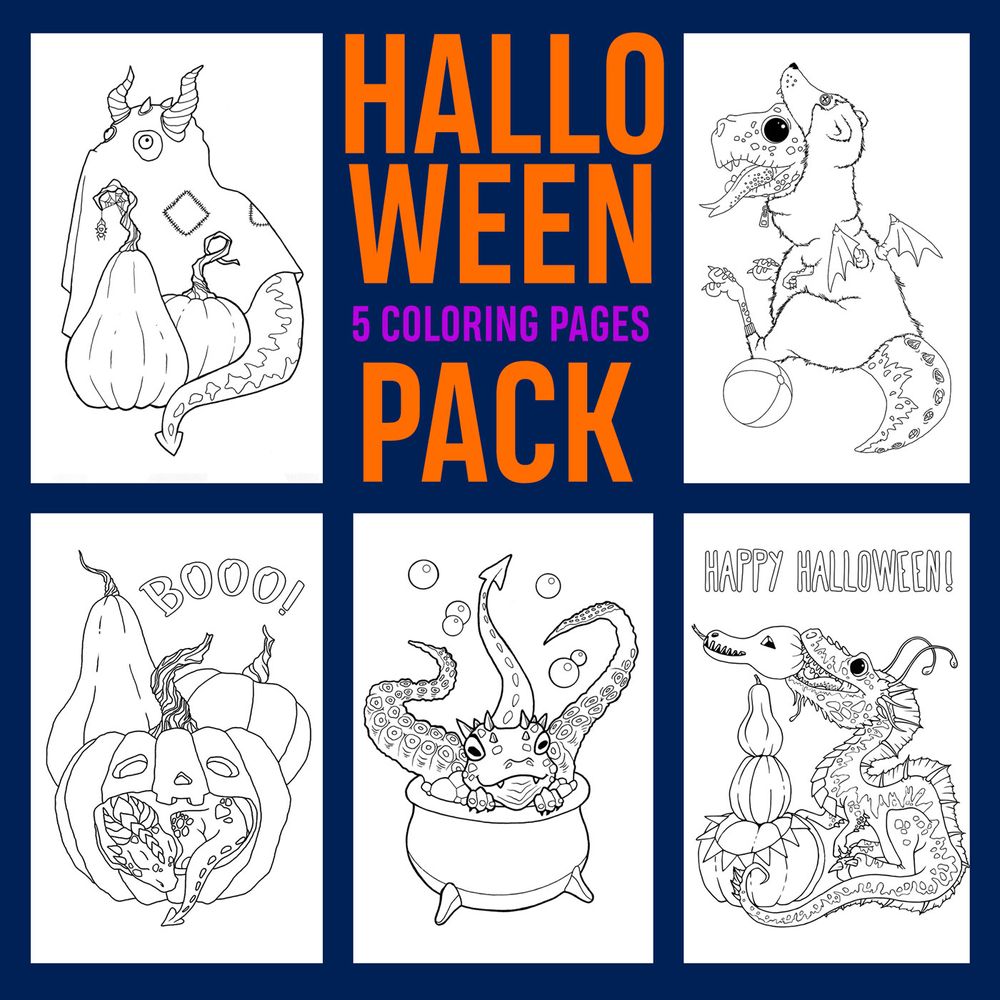 5 Coloring Pages - Halloween Pack