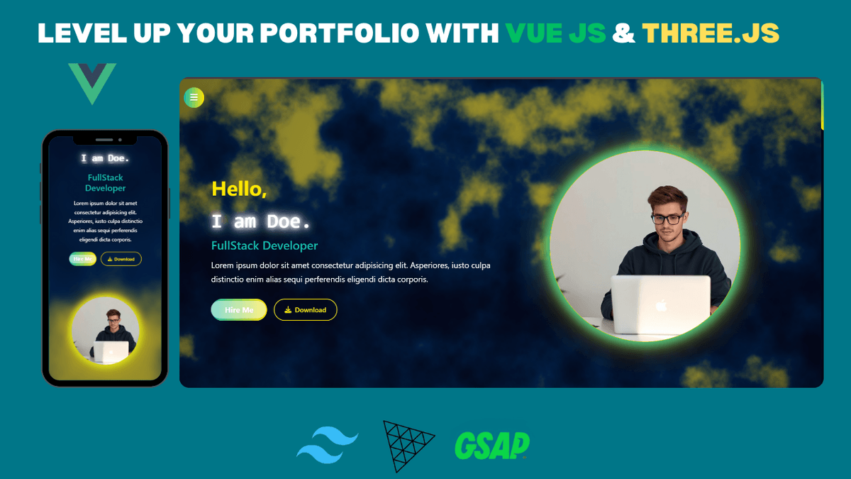 portfolio website vite vuejs tailwind css ,Gsap and three js