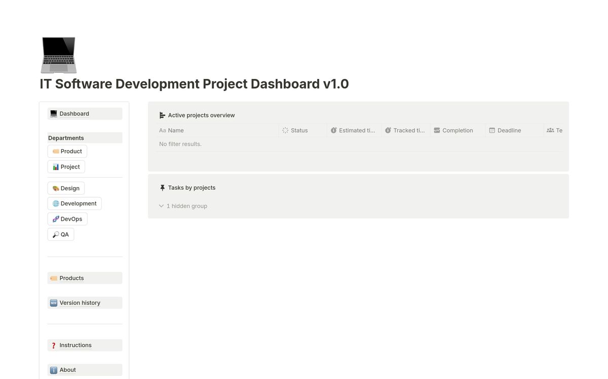 IT Software Development Project Dashboard
