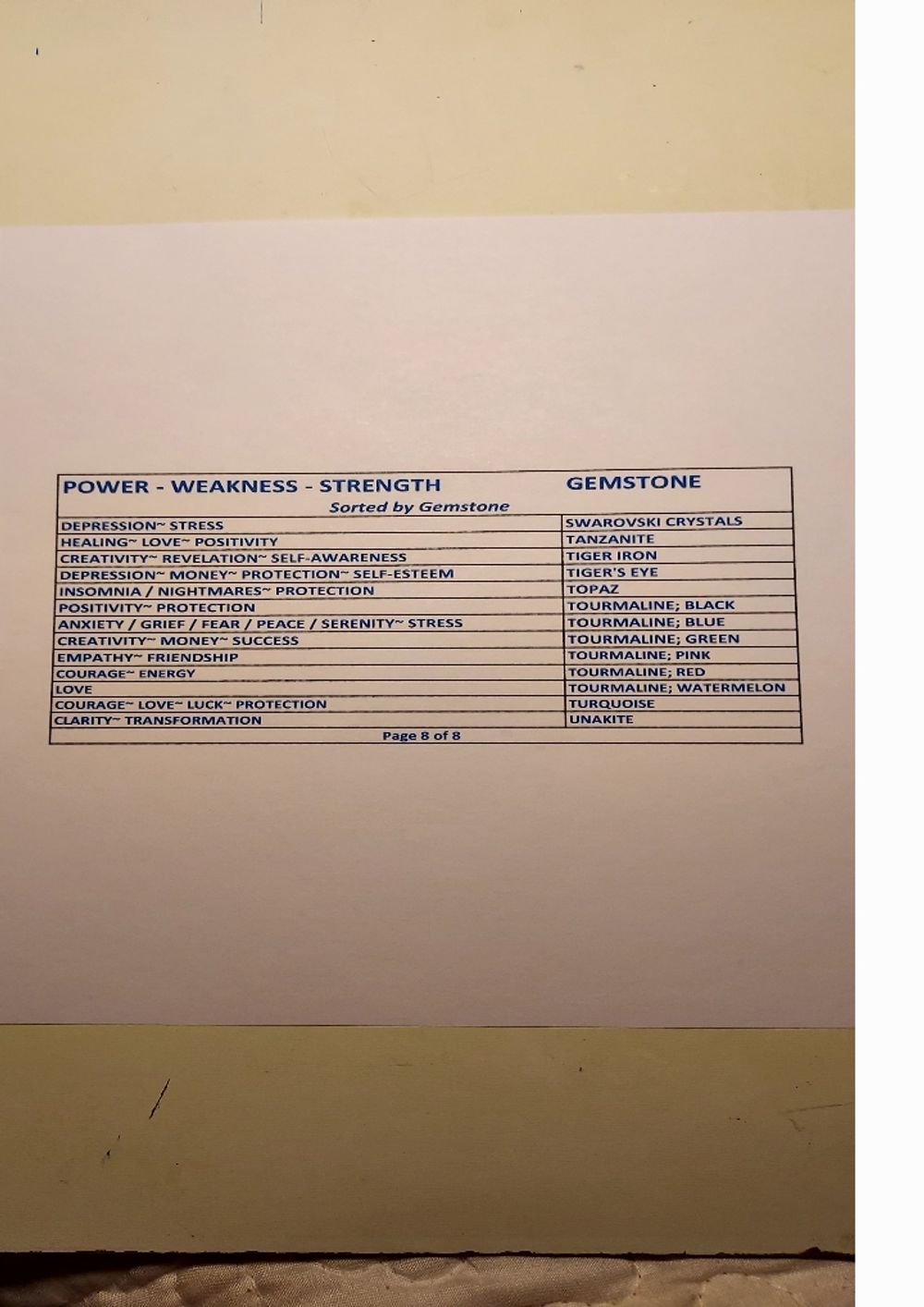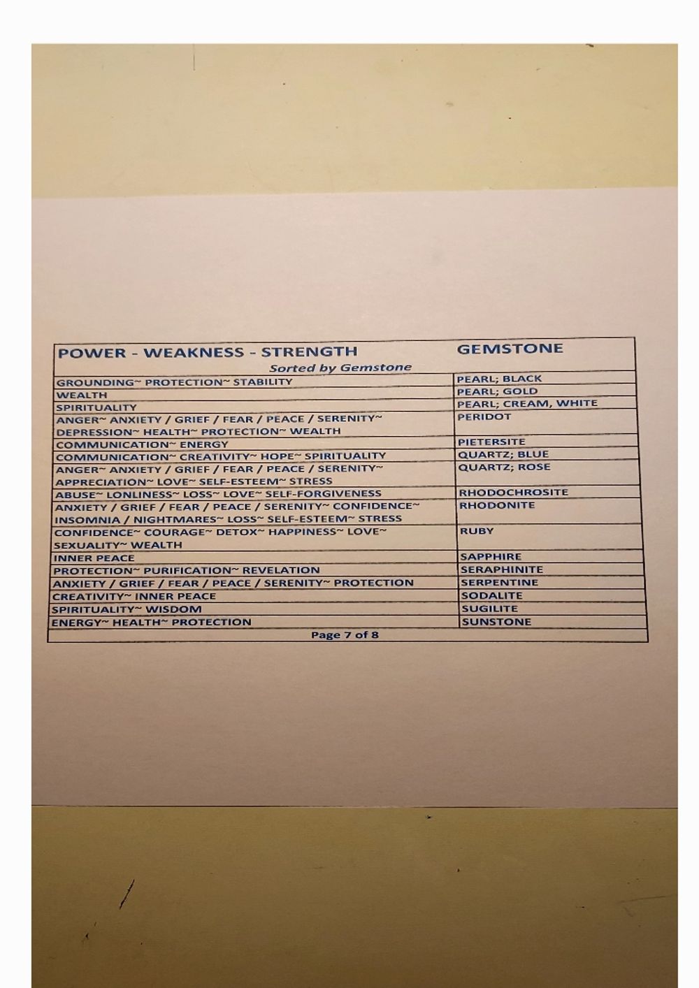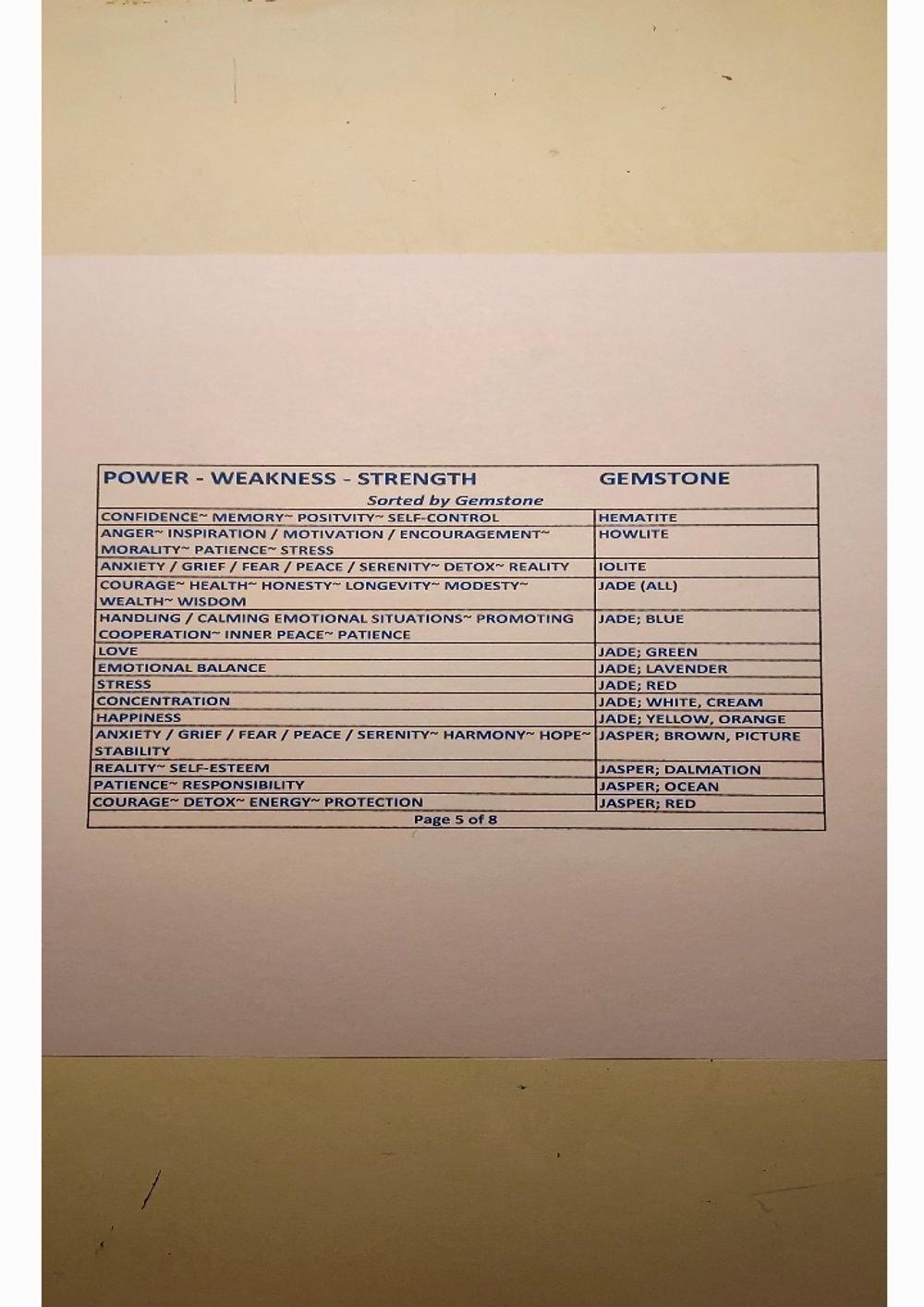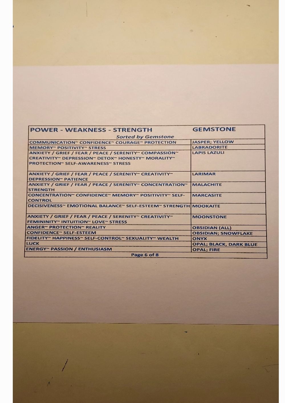 Gemstone Powers Chart - Gemstone Order
