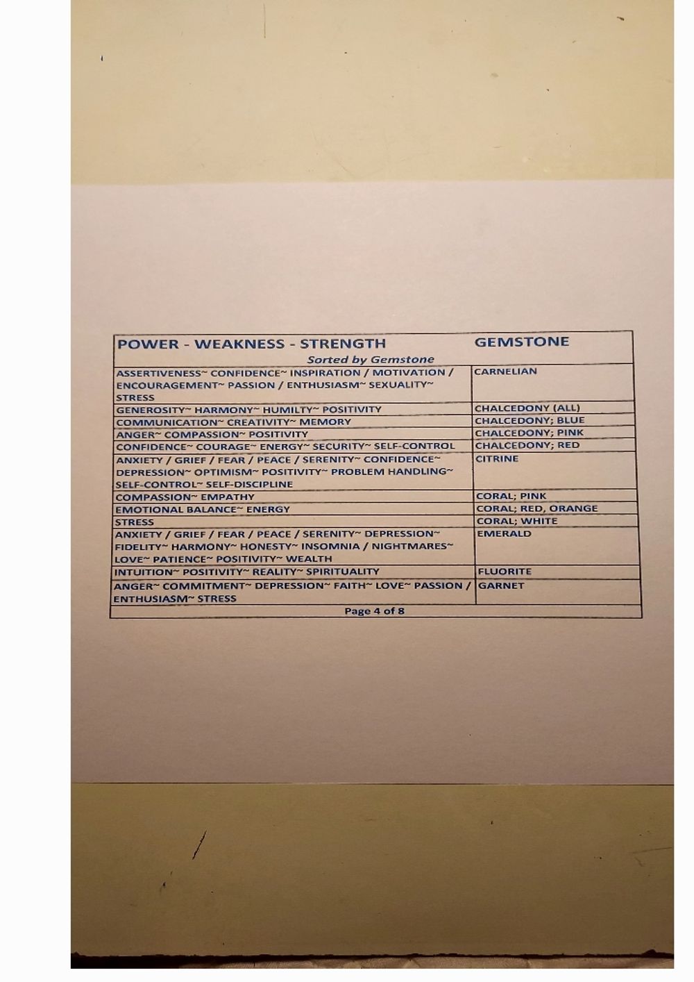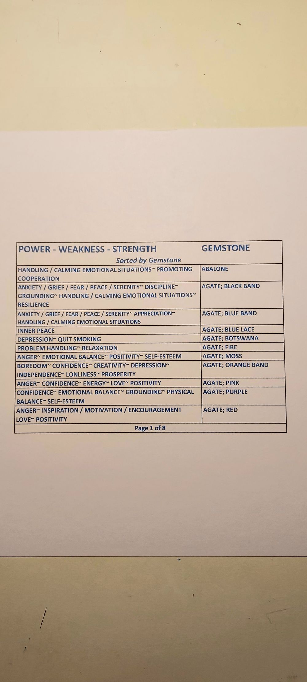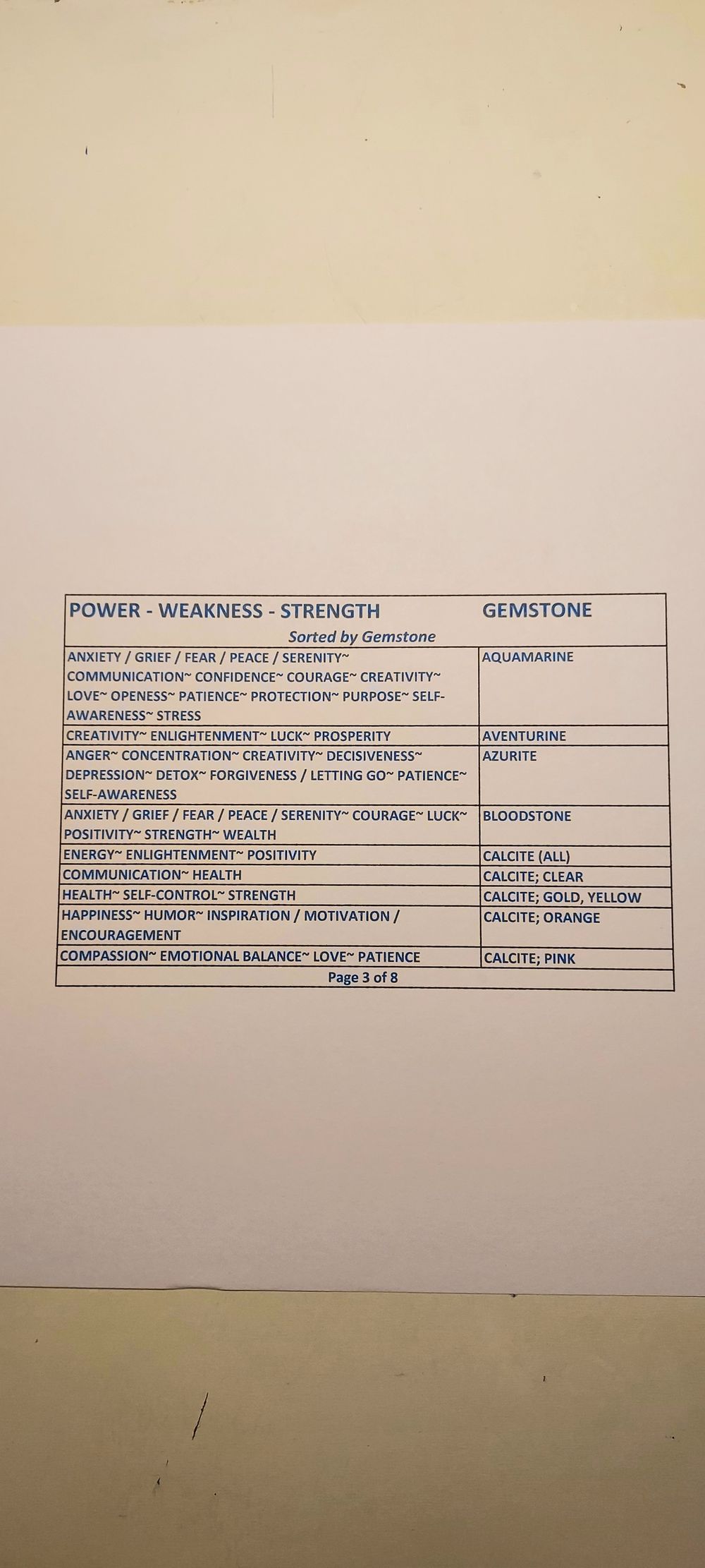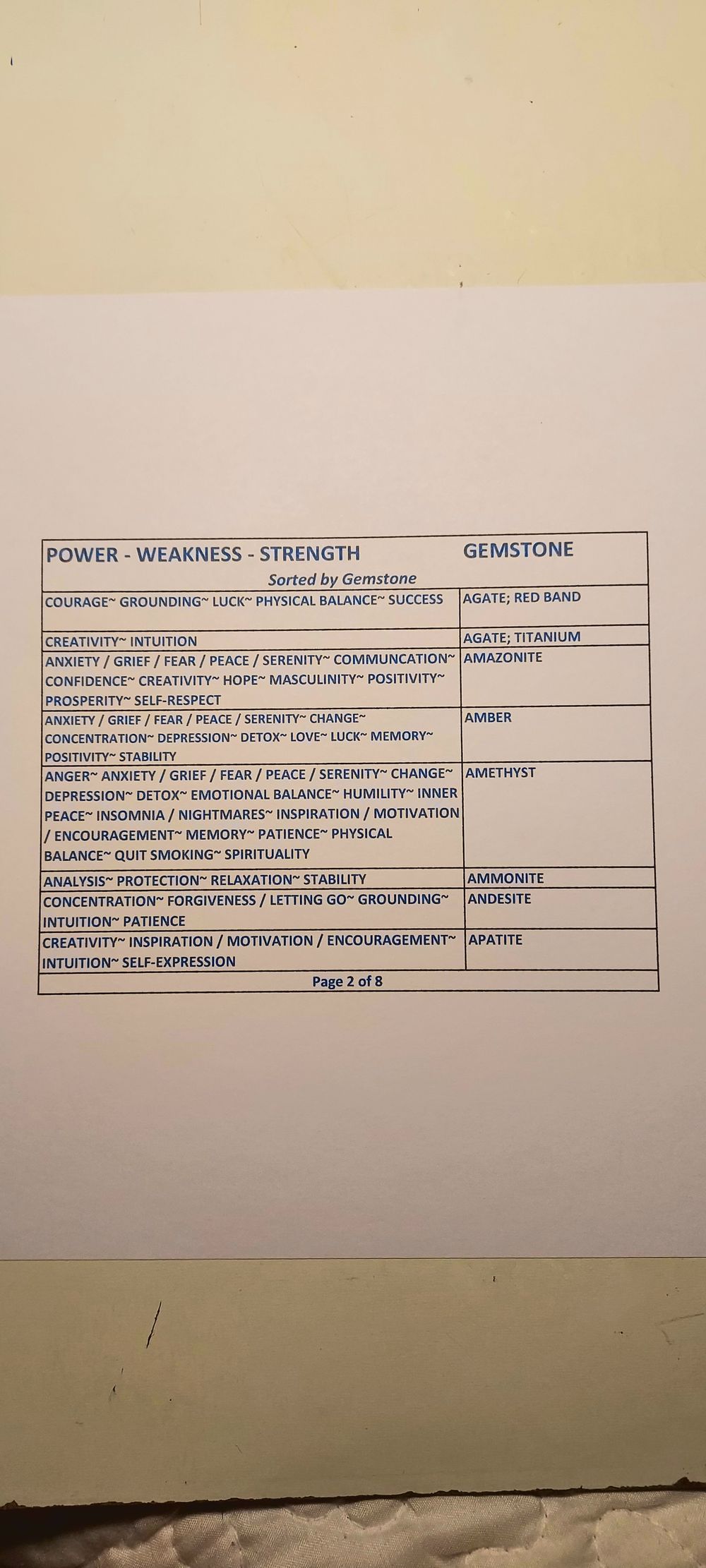 Gemstone Powers Chart - Gemstone Order