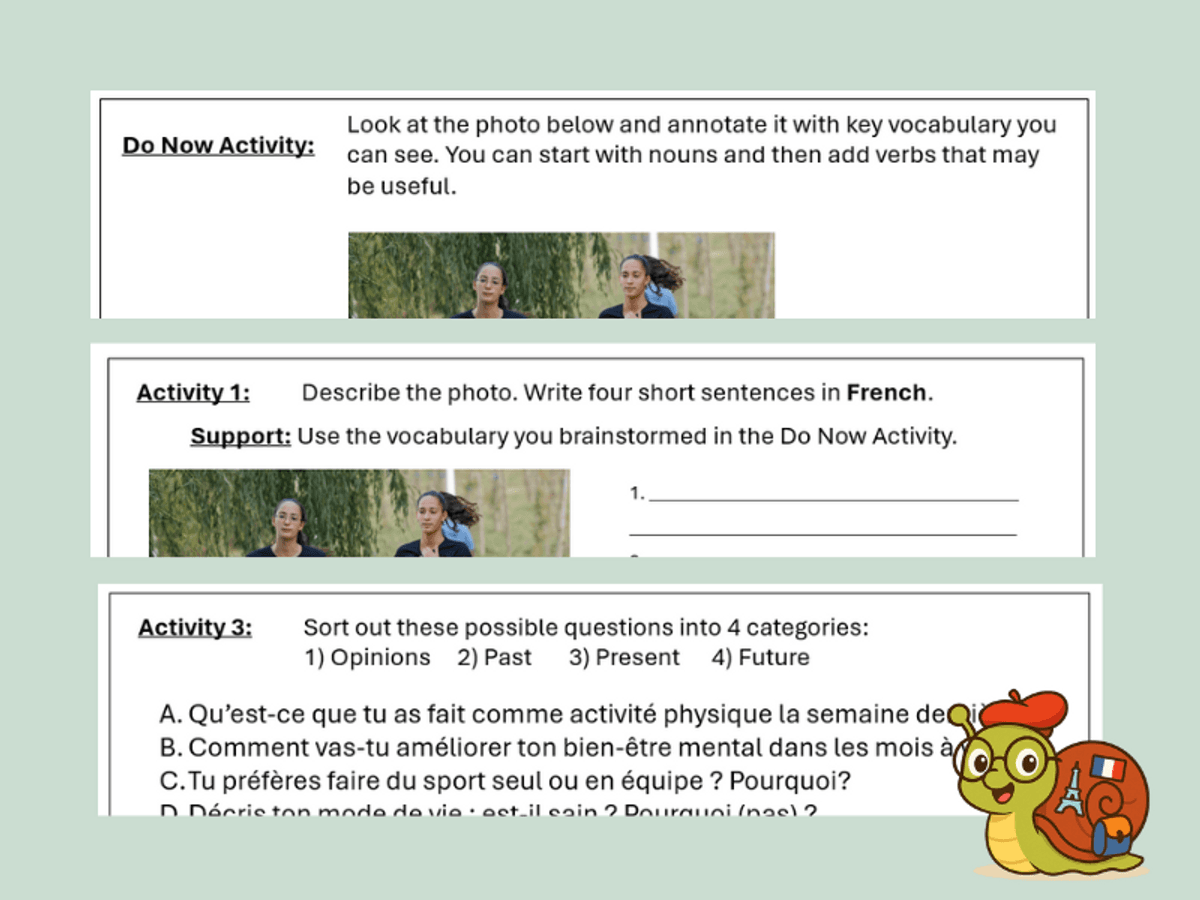 KS4 French GCSE (2024) Edexcel Picture Task Practice - Lifestyle and wellbeing - Physical Activities