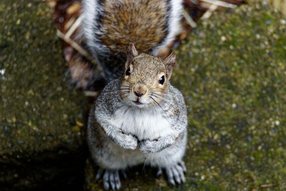 Anna's Hummingbird Barberton daisy, and squirrel begging for food
