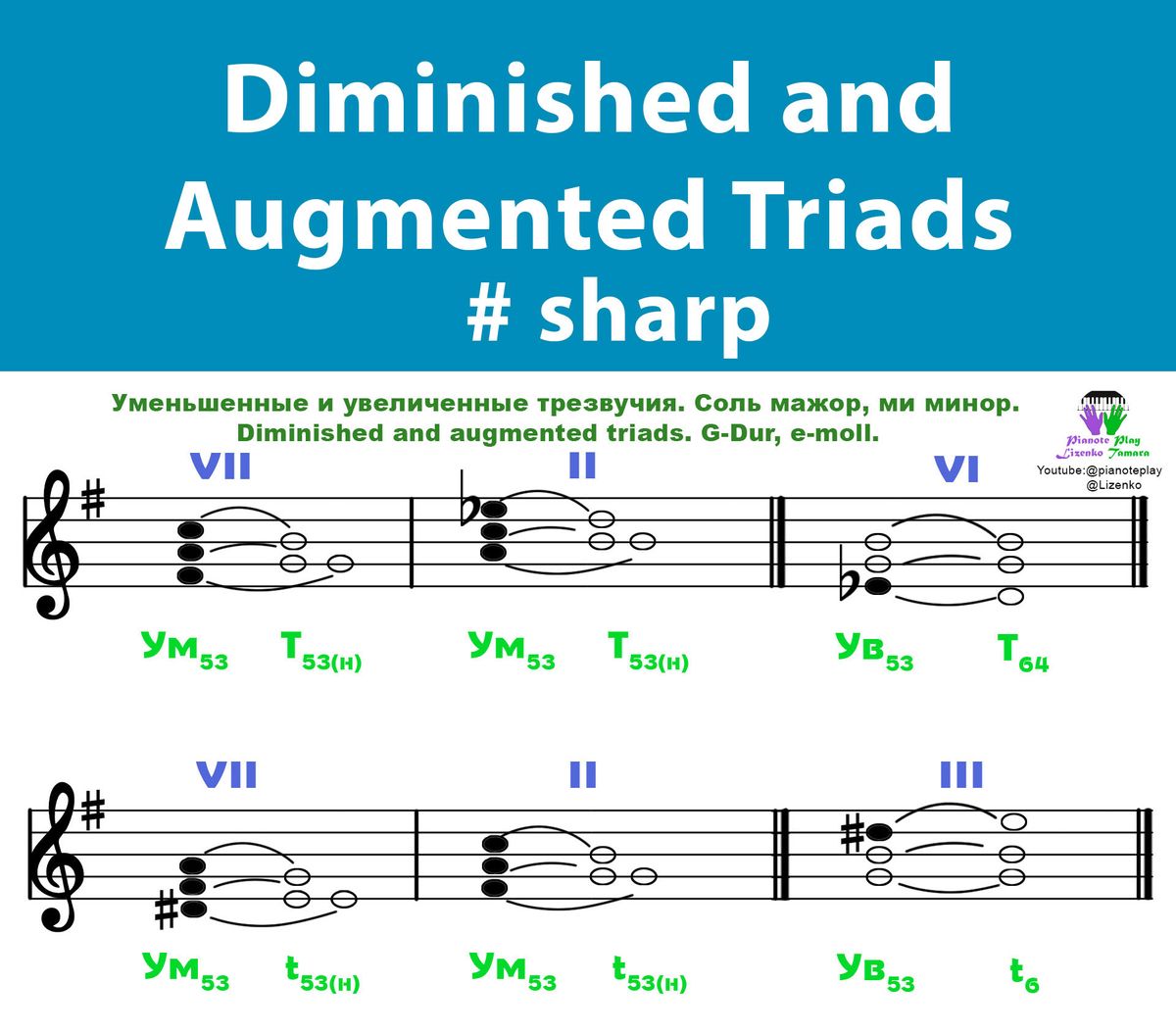 Diminished and Augmented Triads. Уменшенные и увеличенные Трезвучия. Диезные тональности до 7 знаков.