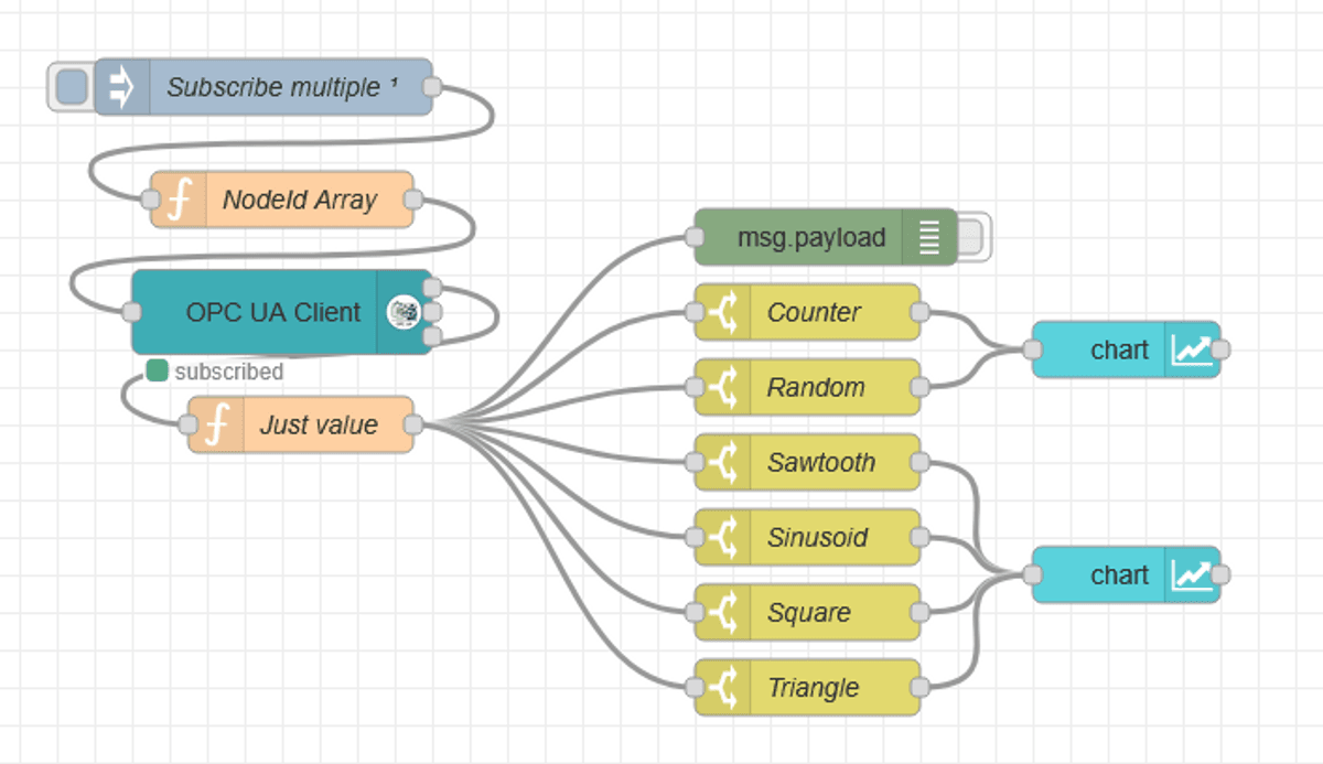 Node-RED as OPC UA Client - Subscribe Multiple Tags and Display on Node-RED Dashboard