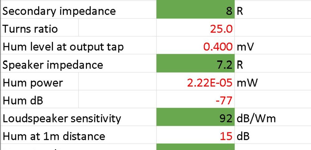 High voltage ripple to loudspeaker hum level excel calculator